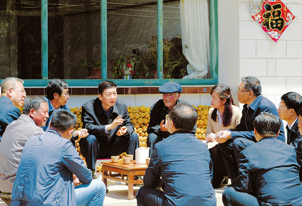 图为骆惠宁在忻州、吕梁调研时与村两委干部和乡亲们深入交谈。 记者 李联军摄