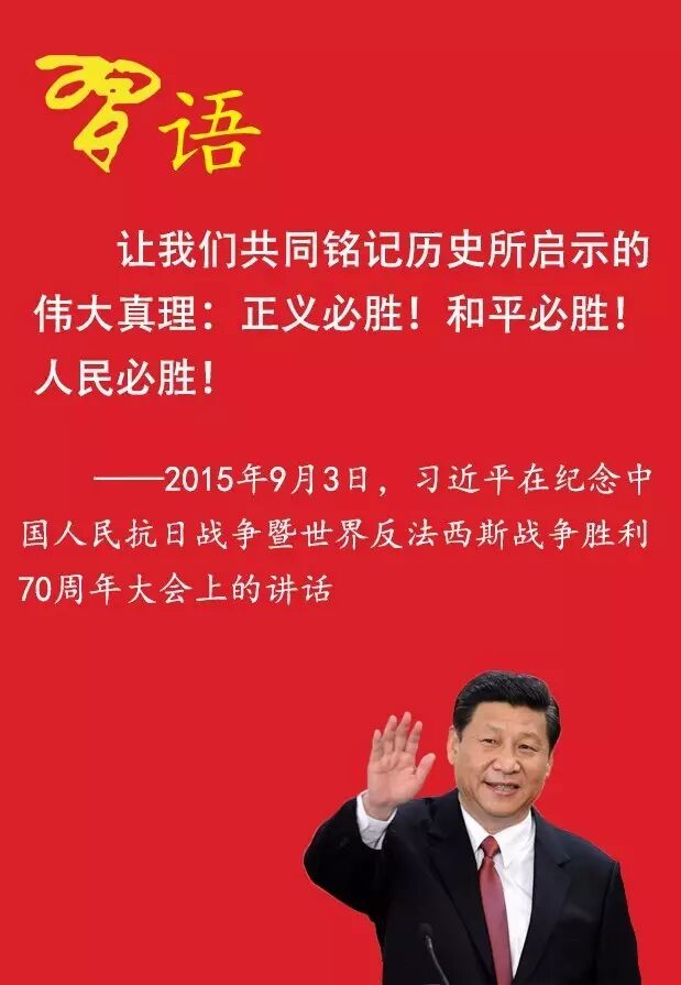——2015年9月3日,习近平在纪念中国人民抗日战争暨世界反法西斯战争胜利70周年大会上的讲话